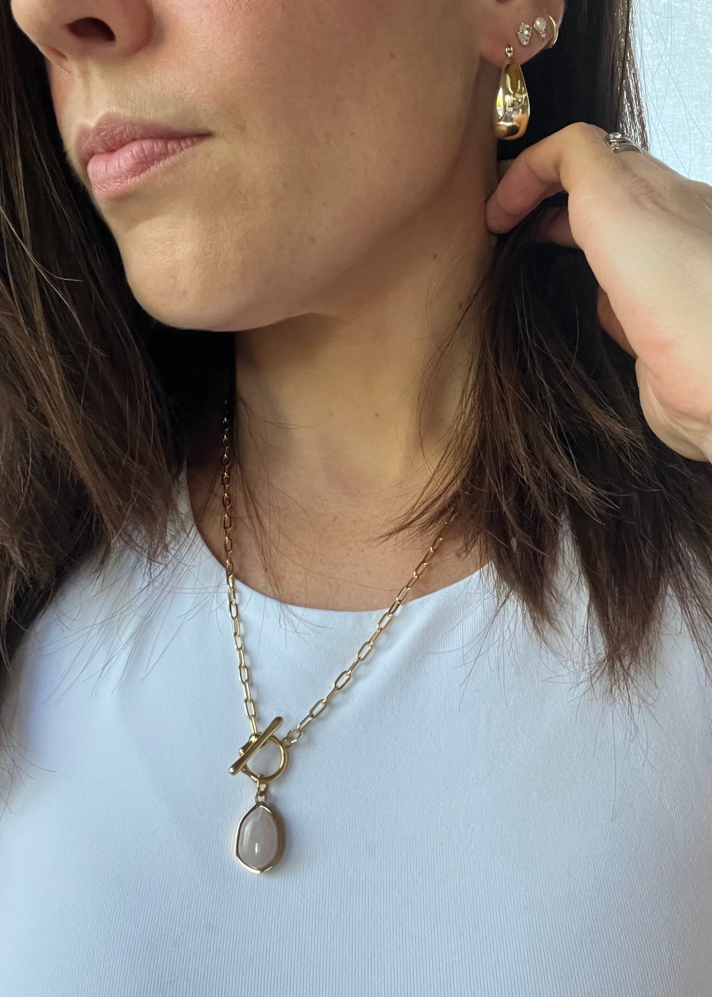 14k gold filled paper clip chain and toggle clasp finished with a gorgeous rose Quartz