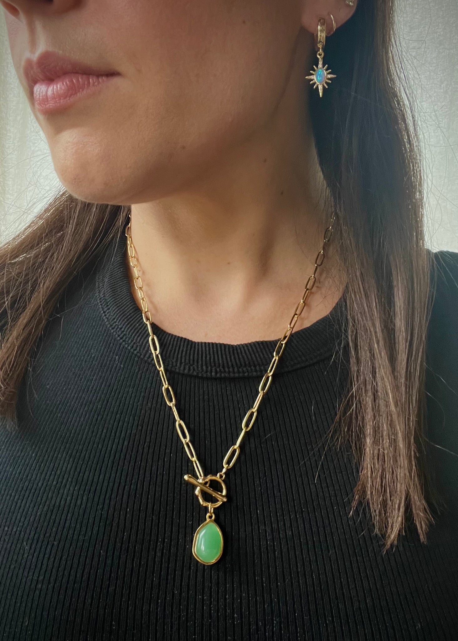14k gold filled paper clip chain and toggle clasp finished with a gorgeous rose Quartz